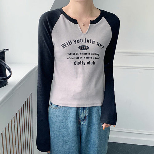 슈팅스타 / 심플 베이직 레터링 프린트 나그랑 배색 긴팔