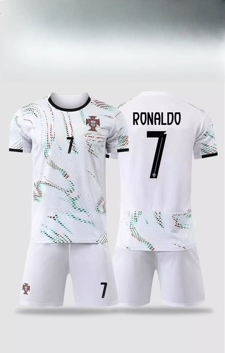 여름 신작 3D 프린트 2526 포르투갈 국가대표팀 유니폼 세트(남성 및 여성용), 속건성 및 통기성 티셔츠.