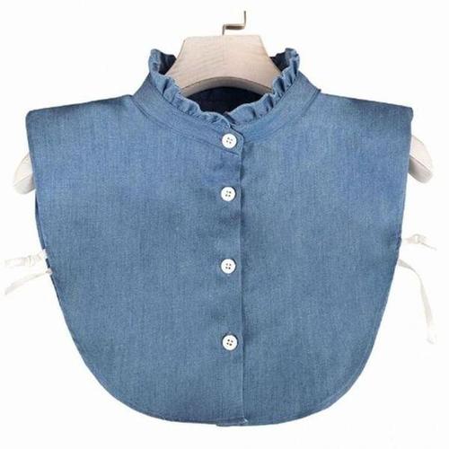 [셀러허브_여성트랜드패션]셔츠 페이크카라 가짜 진청 프릴 데님 레이어드 넥