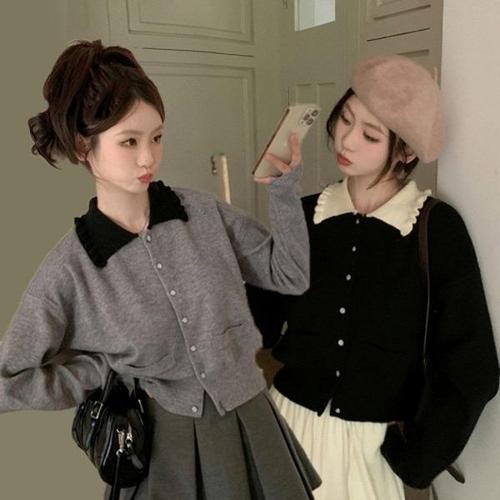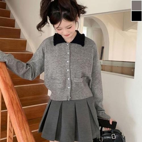 [엄지척]봄 가열 여성스러운 프릴 포인트 배색카라 숏 가디건_19805579_667501