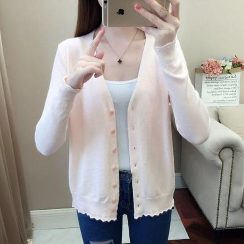 한정수량 쪼꼬마미 오로라 여자 브이넥 진주단추 니트 숏 가디건