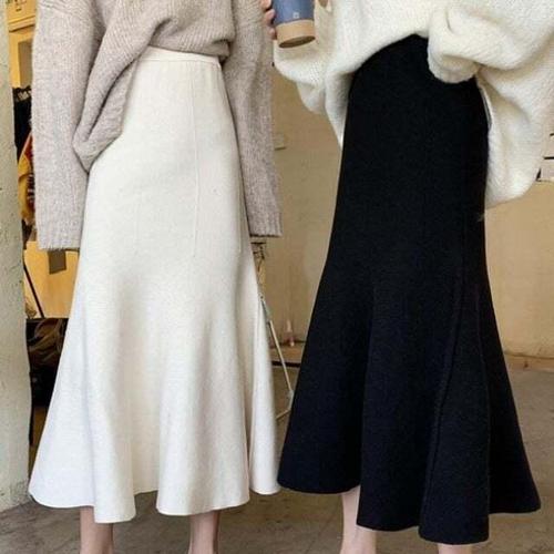 EAMT 스커트 미디 니트 이너 프렌치 프릴 여자치마 머메이드 오버 패션 스웨터 무릎 YJ3