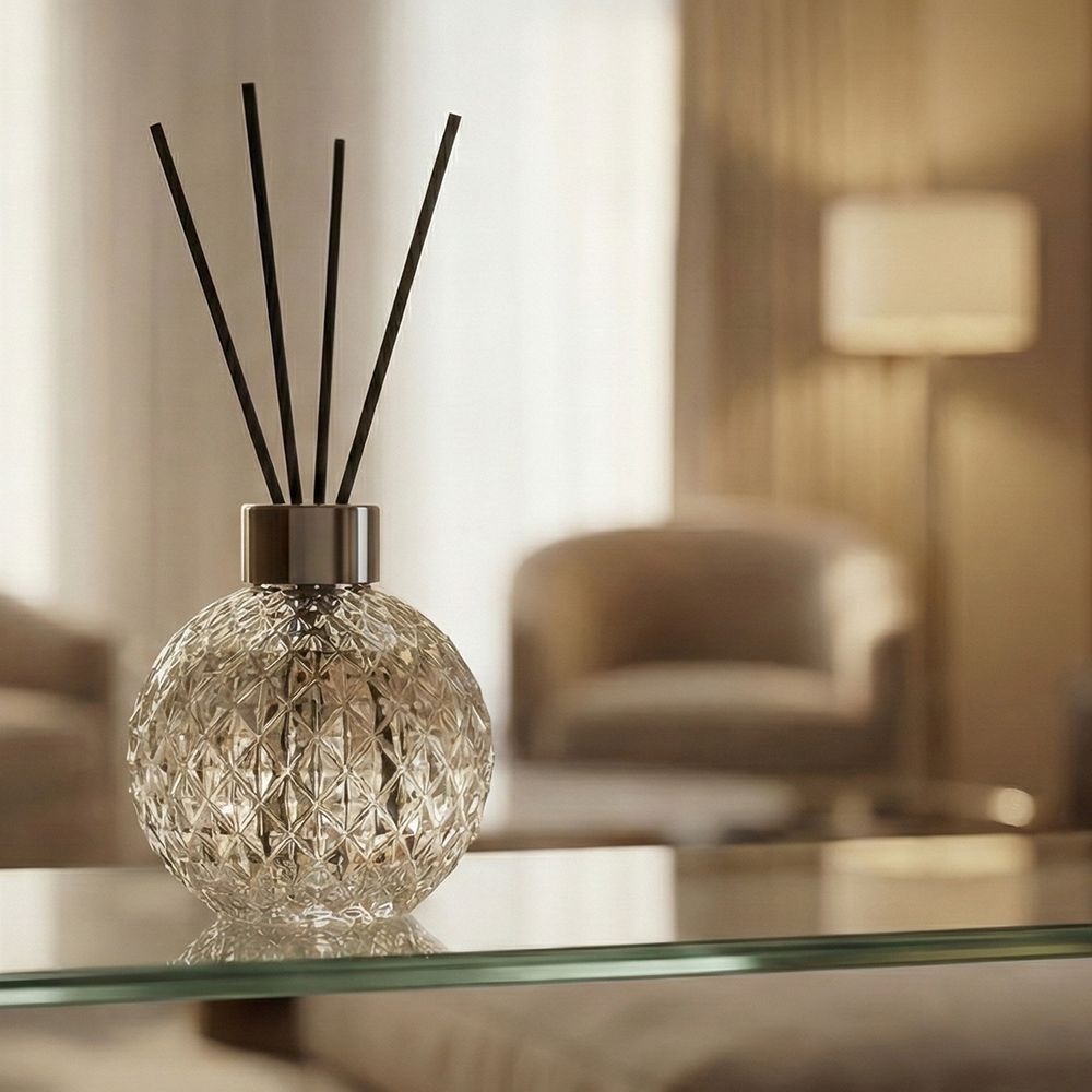 TEMU 인스타 스타일 유리 아로마 디퓨저 보틀, 투명한 실내용 무화염 디퓨저, 산뜻하고 오래 지속되는 향을 위한 기하학적 디자인, 라탄 스틱 포함 (보틀만 해당)