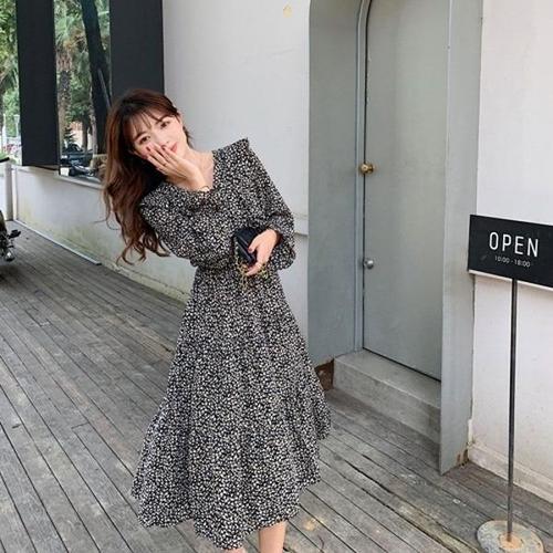 프롬코 여성 잔꽃무늬 플라워 롱 원피스 [자체제작 FRC37]