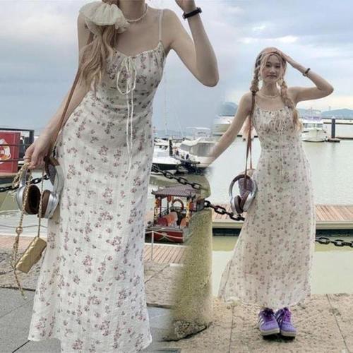 [다잇템_패션]여성 롱 플라워패턴 어깨끈 귀여운 원피스