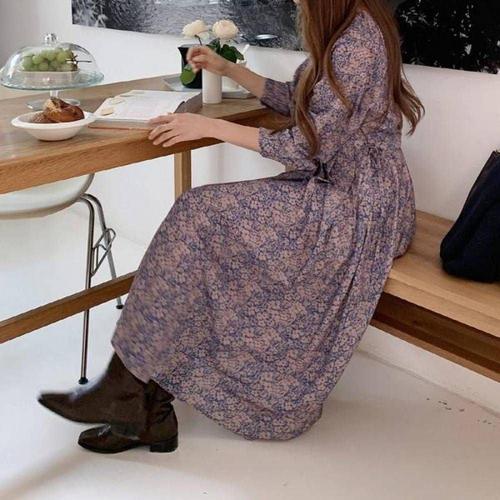 [다잇템_패션]여성 플라워패턴 귀여운 랩 롱 V넥 원피스