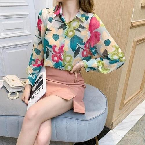 [엄지척]컬러풀 플라워 시스루 소재 셔츠 블라우스_19652210_667501