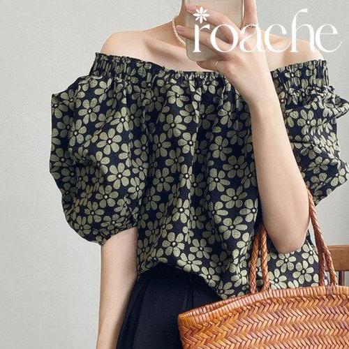 [헬렌]로아체 플라워 패턴 오프숄더 블라우스 라니오프숄더B