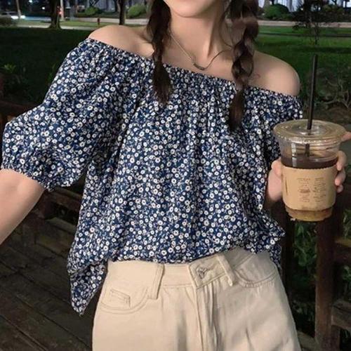 [셀러허브_여성트랜드패션]ONM 러블리한 플라워패턴 오프숄더 여름 반팔 블라우스