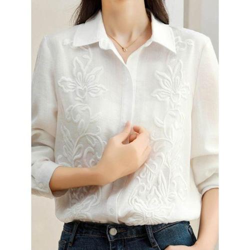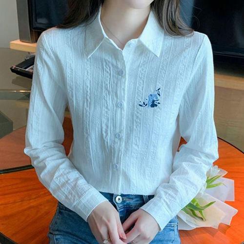 여성 리본 플라워 자수 긴팔 셔츠