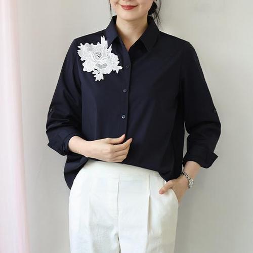 [웬디즈갤러리]플라워 자수 패치 셔츠 /여성 모임룩 블라우스 USH101