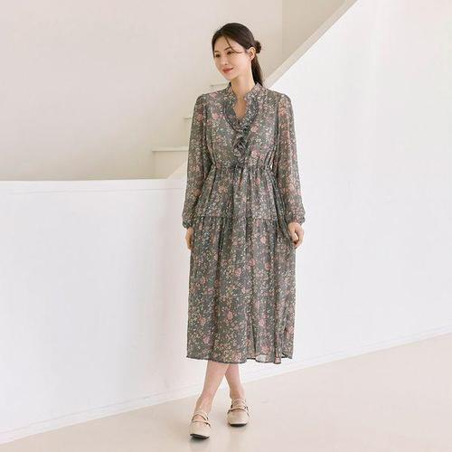 [ab.f.z]AOZ1HO39C_프릴 프라워 시폰 롱 원피스
