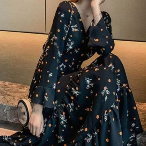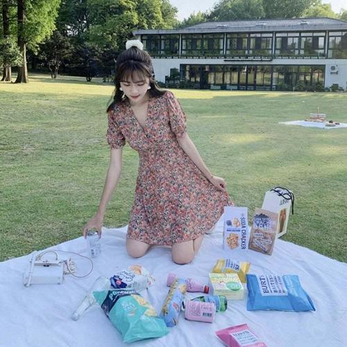 [셀럽하우스]가벼운소재 OFFV9575 스커트 라인 플라워 패턴 프렌치 원피스