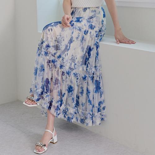 [에이비에프지]플라워패턴 밴딩롱면스커트 APY3HS32I