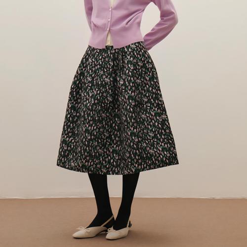 [샤틴]플라워 패턴 자카드 스커트/S254M357