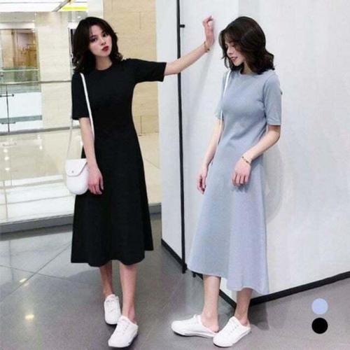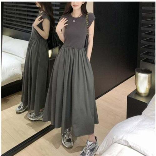 [셀럽하우스]반팔 GSFH9123 베이직 플레어 롱원피스 반팔롱 올데이 오버핏