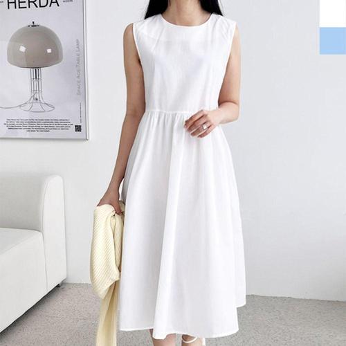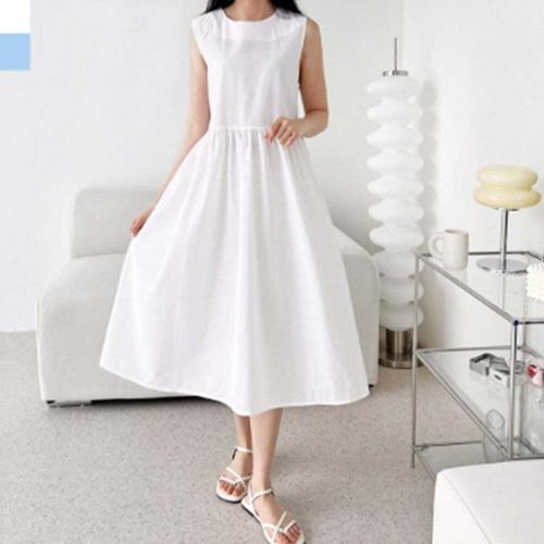 [셀럽하우스]여자 RSKD2054 흰색 민소매 롱원피스 플레어 여름 휴가 여행