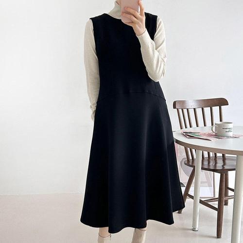 [옷자락] 여자 겨울하객룩 플레어 절개 민소매 기모 롱원피스