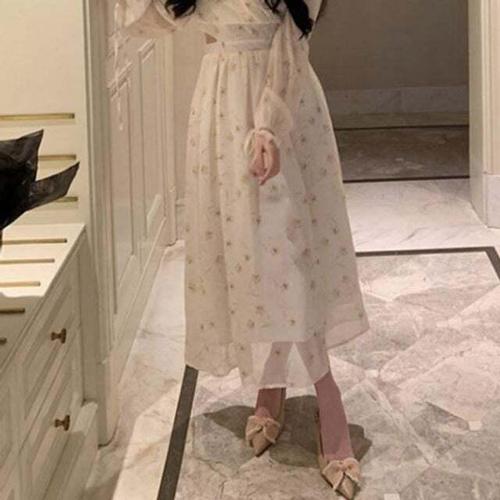 [셀럽하우스]플라워 IZHY0353 롱원피스 플레어 퍼프소매 원피스 뷔스티에스