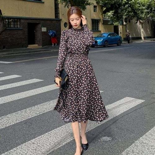 [셀럽하우스]플레어 NCYZ0247 패턴 롱원피스 스커트 원피스 밴딩 플라워 미