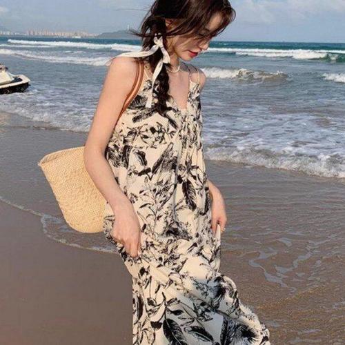[에이치플러스몰]여성 플로럴 쉬폰 나시 롱 원피스 휴양지 여름 여행