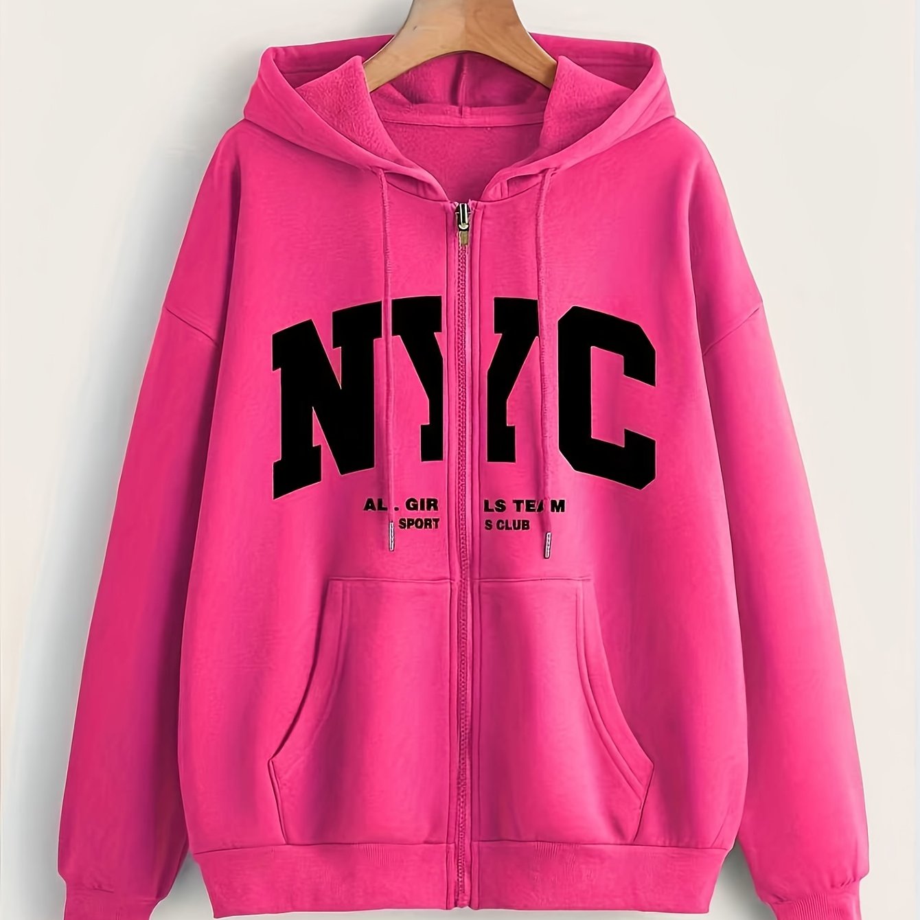 TEMU 여성용 캐주얼 후드티, "BROOKLYN" 프린트, 지퍼업, 드로스트링, 기모 안감, 짧은 길이, 긴소매, 캐주얼 웨어 후드티|캐주얼 스타일 후드티|지퍼 후드티