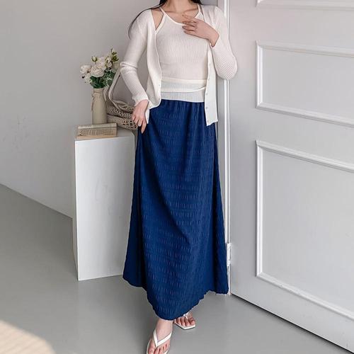 [셀럽하우스]밴딩 YUKO7178 베이직 포치 플리츠 롱 스커트