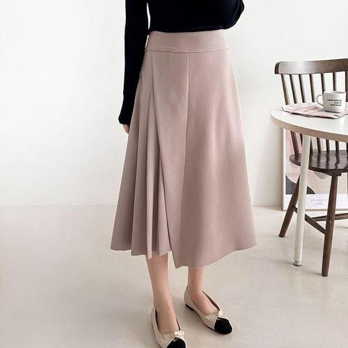 [옷자락] 여자 봄 출근룩 하프 플리츠 스판 하객룩 롱스커트