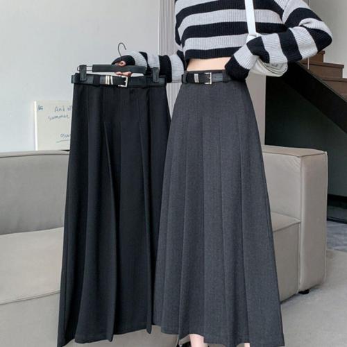 네모엔룩 롱핀턱플리츠 여성용 허리핀턱 주름A라인 벨트세트 롱 스커트. 스커트+벨트 총 2종