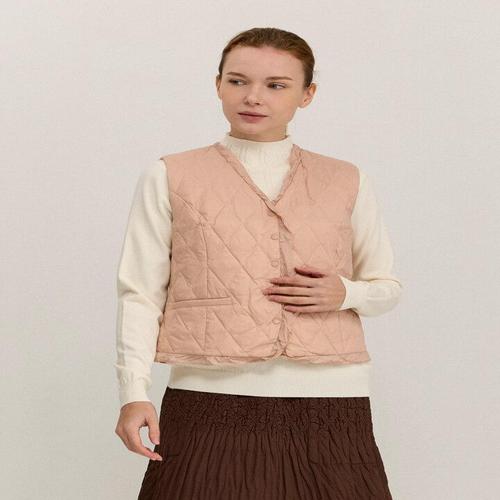 [플리츠미][플리츠미] 자가드 퀼팅 V넥 버튼 베스트_PPVTW025001