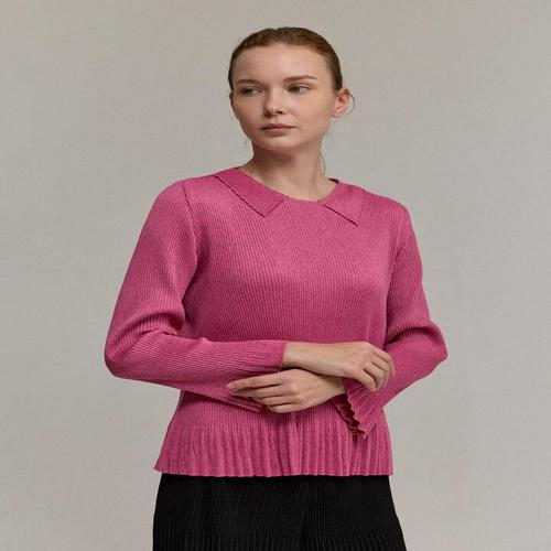 [플리츠미][플리츠미] 니트 셔츠 카라 릴리즈 플리츠 티셔츠_PPTSW025008