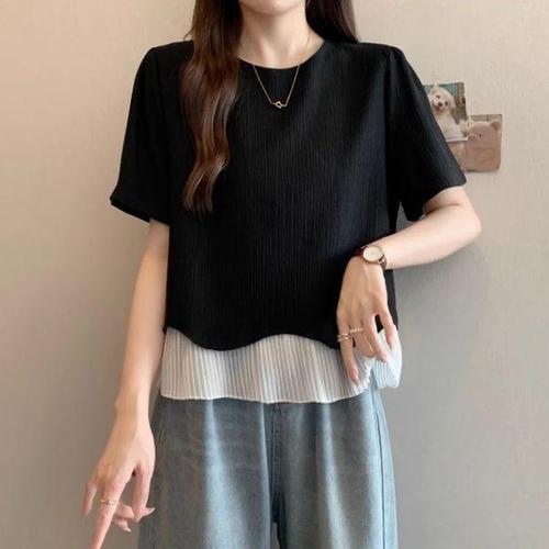 [신상오픈런]여성 여름 라운드넥 플리츠 반팔 티셔츠 블라우스