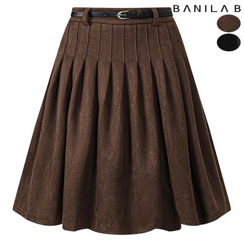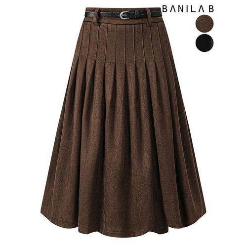[바닐라비][S-M] 여성 벨트세트 플리츠 미디스커트