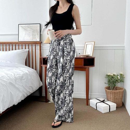 유니크 GT36XX85 플랜트 뱀부 플리츠 프릴 와이드 팬츠