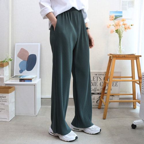 [신상오픈런]여성 플리츠 와이드 팬츠 밴딩 찰랑핏 등원룩