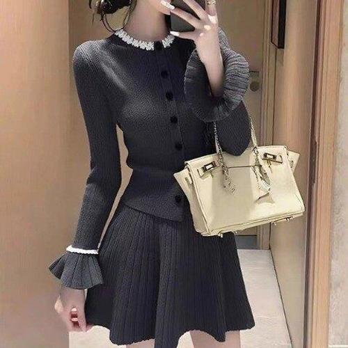 [아리엘스타일]니트투피스 플리츠스커트세트 겨울데이트룩 리베노니