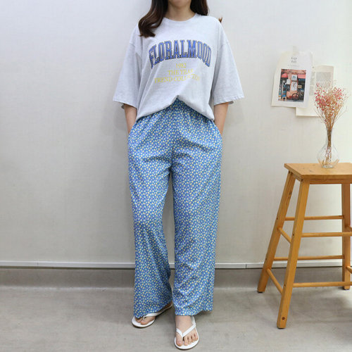레이츄 / 꽃바지 플리츠 주름 밴딩팬츠 반팔 티셔츠 세트