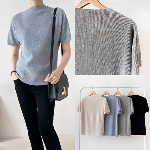 [플리츠미][플리츠미] 니트 셔츠 카라 릴리즈 플리츠 티셔츠_PPTSW025008