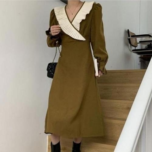 [엄지척]돌잔치룩 추천 브이넥 밑단 플리츠 롱원피스_19910102_667501