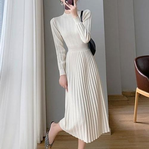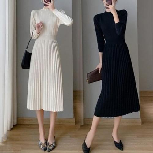[미라클세븐]여성 플리츠 니트 롱원피스 겨울 등원 패션