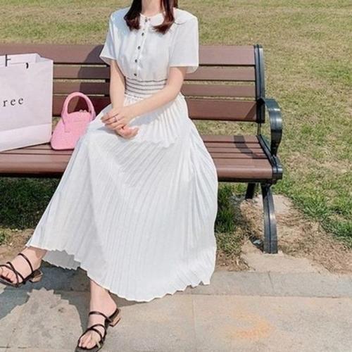SIS-868 임부 플리츠 드레스반팔원피스 임산부 임부복 캐주얼 롱원피스