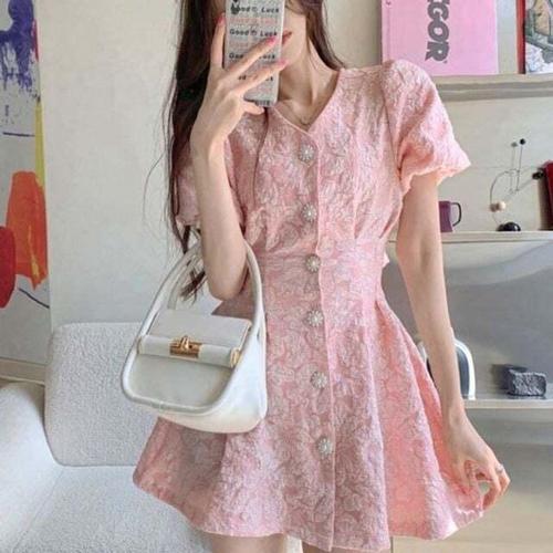 [셀럽하우스]원피스 MARF8852 인기 플로아 미니 결혼식 하객룩 피로연 버튼