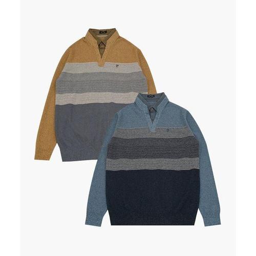 [피에르가르뎅](모다인천점)블루 컬러 블럭 셔츠 레이어드 니트/PQKT3352B_IC