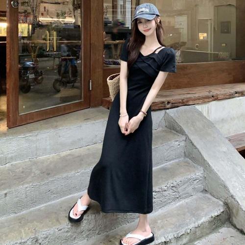 [셀럽하우스]여성 QQLA0871 캐주얼 트임 셔링 핀턱 슬림 롱 원피스
