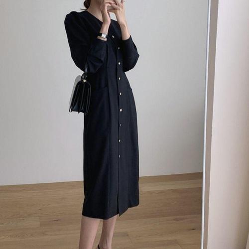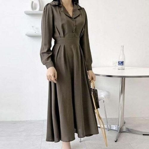 [셀럽하우스]슬림 OVYG1884 여성 데일리 여자 원피스 클래식 카라 핀턱 롱