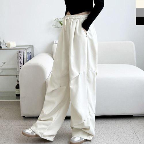 [옷자락] 여성 심플 핀턱 리벳 스트링 조거 와이드 팬츠