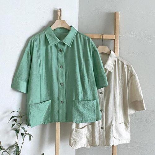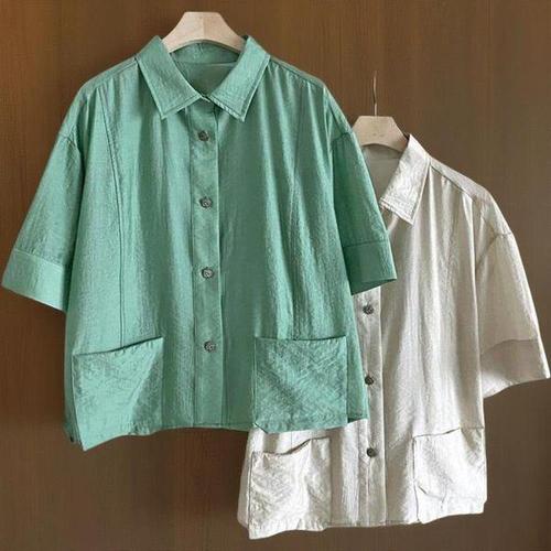 [신상오픈런]여성 오버핏 반팔 셔츠 세미크롭 핀턱 캐주얼 블라우스