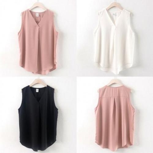 [미라클세븐]여성용 루즈핏 캡소매 핀턱 셔링 블라우스 조끼