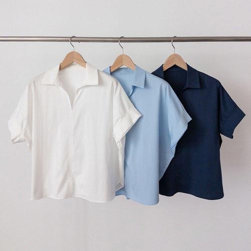 [옷자락] 여자 클래식 오버핏 핀턱 히든버튼 여유핏 반팔 셔츠
