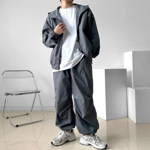 트렌디 남자 후드 핀턱 와이드 운동복 트레이닝 세트